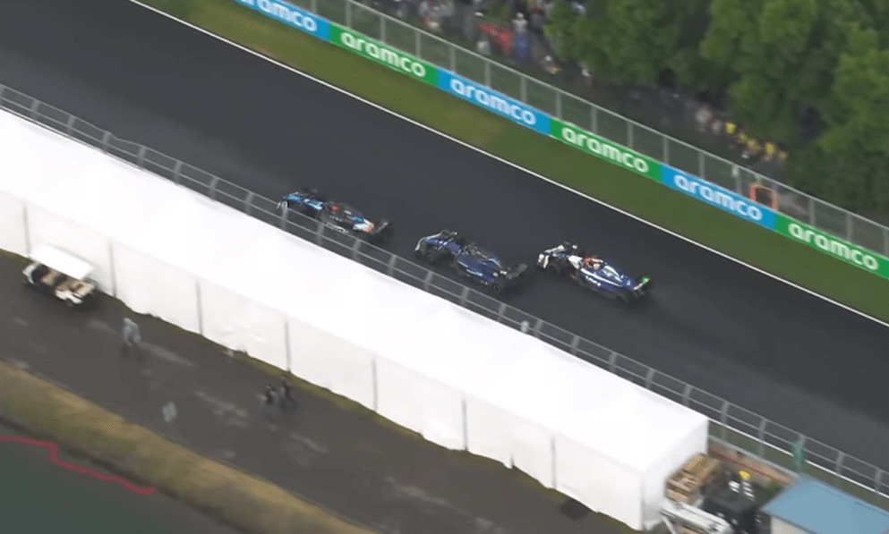 Just as Perez crashed, another incident happened. This time it was Carlos Sainz and Alex Albon. Sainz spun in front of Albon and even though Albon tried to avoid Sainz, he couldn’t succeed. Albon didn’t continue and stopped the car. Sainz went into the garage and retired.
