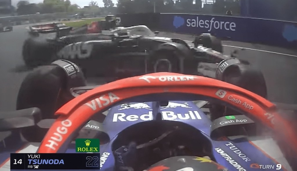In lap 66, Yuki Tsunoda went off the track, got in a small puddle, spun and stopped in the middle of track. Kevin Magnussen avoided the RB with insane reflexes.
